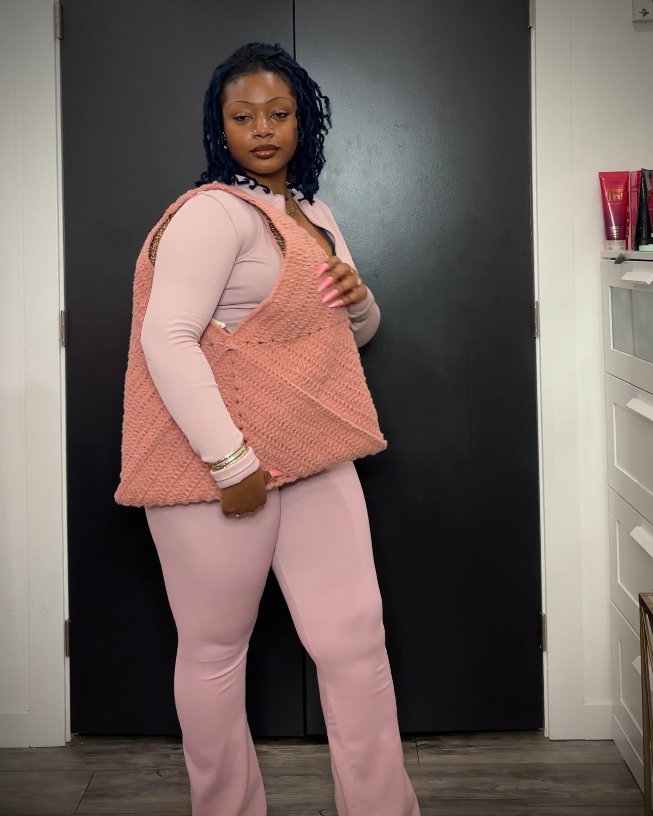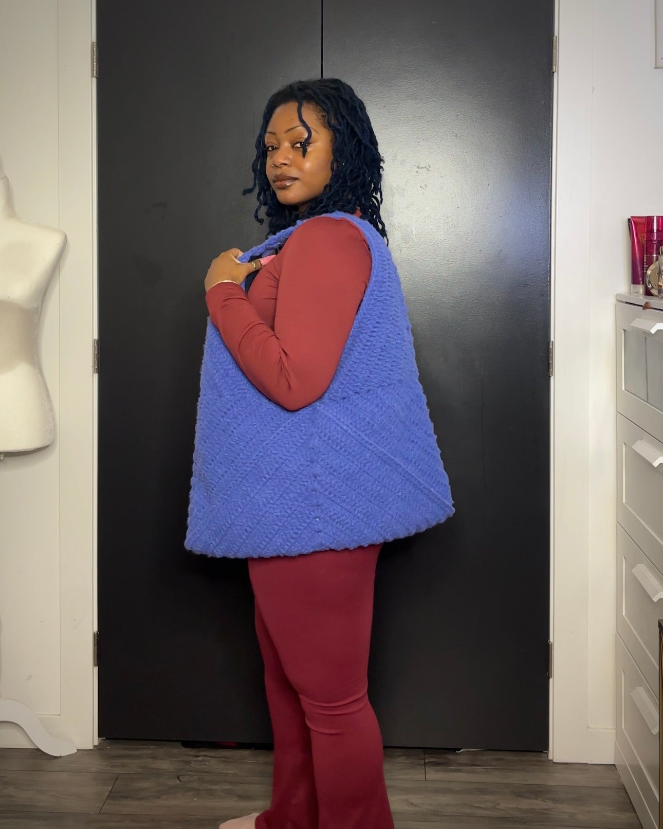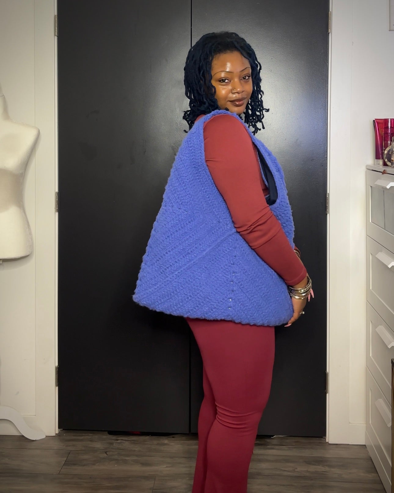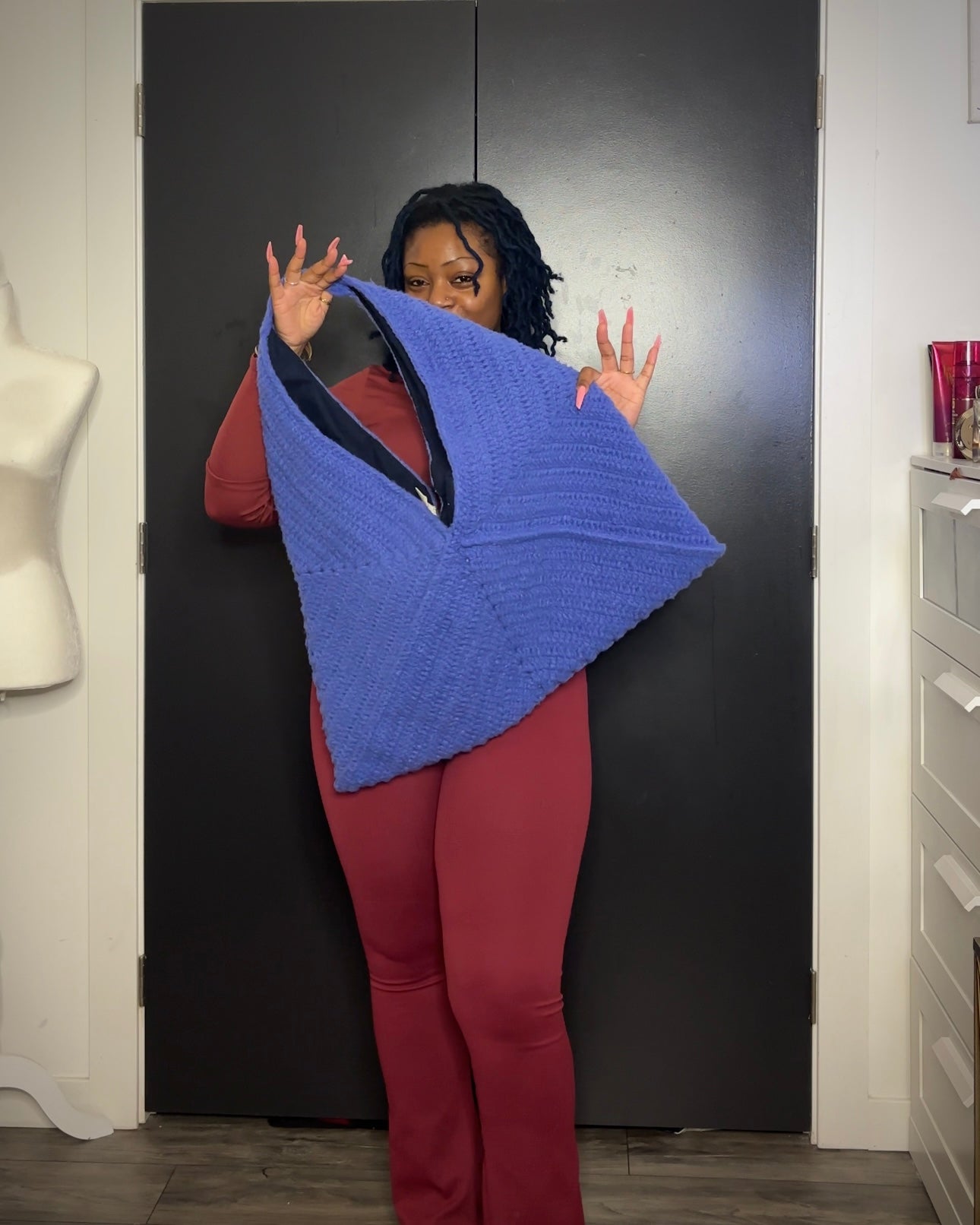 This large crochet tote bag is perfect for longs days, spending the night, or whatever needs approximately 384 square inches of space.