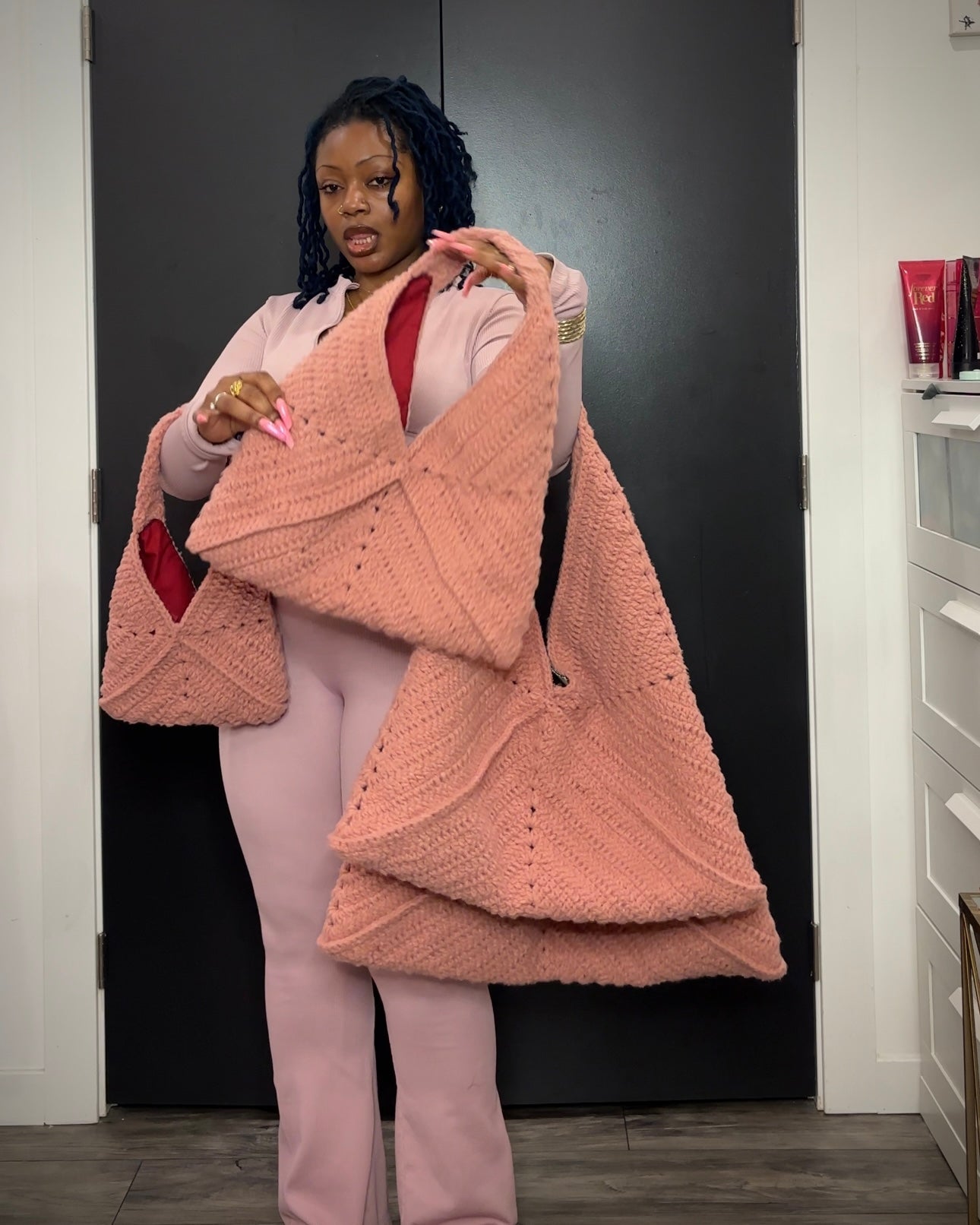 This mediumish crochet tote bag is perfect for everyday (and every day) use! Fits just enough without being too big (think iPad, cosmetic bag, water bottle and mini umbrella).