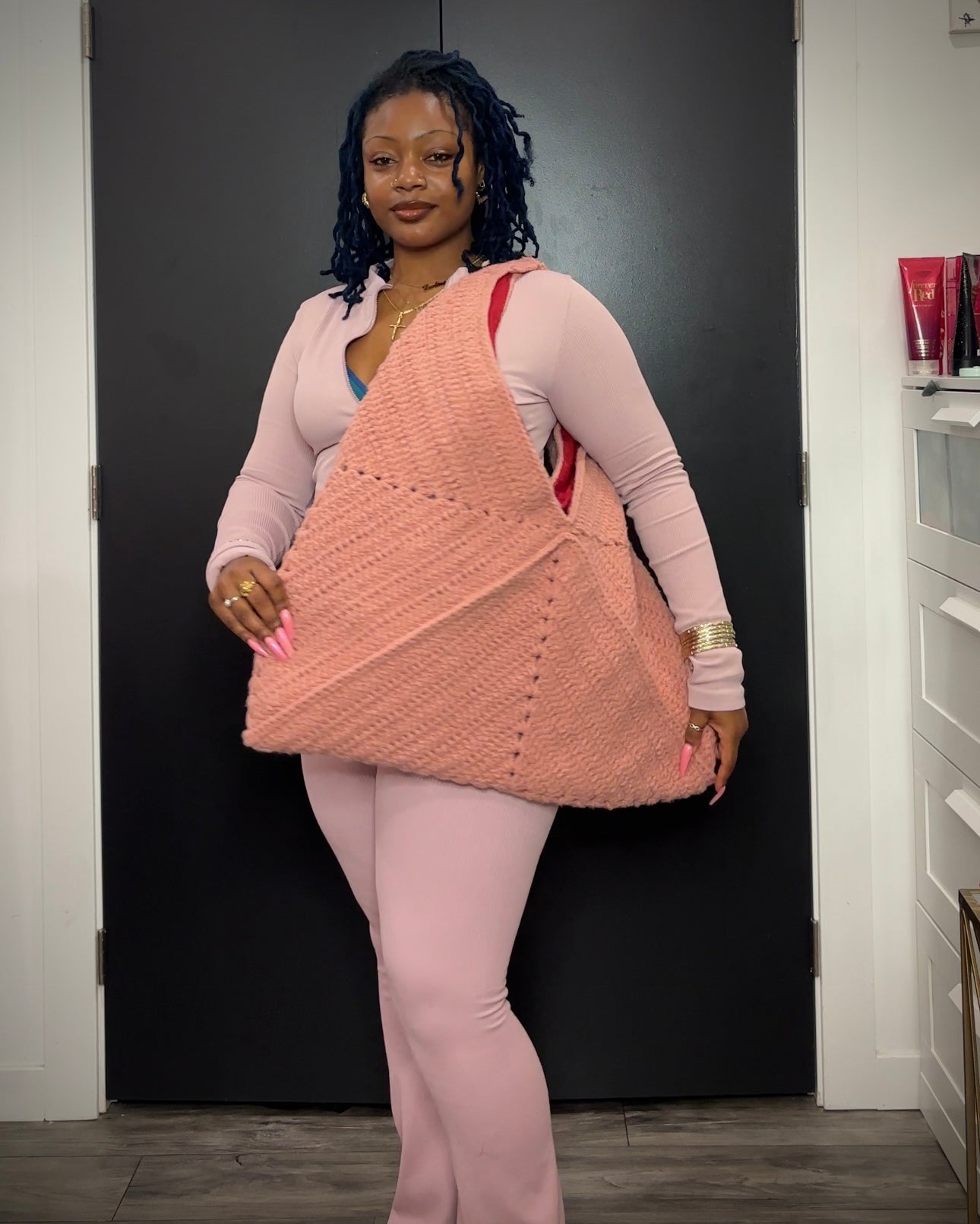 This wumbo sized crochet tote bag gives you style and function. With a width and height of 26 inches, it can fit everything you need and more
